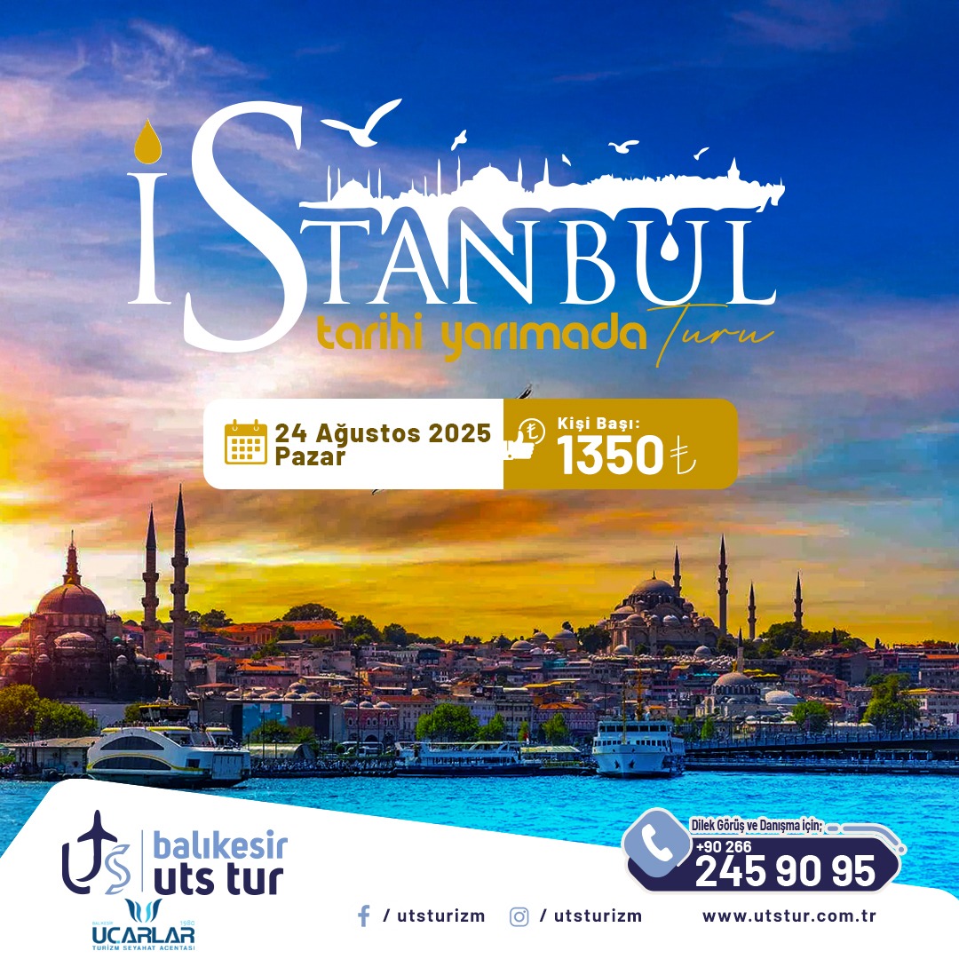Yol güzergâhında kahvaltı molası sonrası İstanbul'a doğru hareket ediyoruz. Rehberimiz eşliğinde turumuza başlıyoruz. 532-537 yılları arasında yapılan Ortaçağ'ın en görkemli yapılarından Ayasofya'yı, Mimarbaşı Sedefkar Mehmed Ağa'nın ancak bir sedef ustasının gösterebileceği incelikle yaptığı Sultanahmet Camisi'ni ve Sultanahmet Meydanında bulunan Dikilitaş ve Alman Çeşmesi hakkında bilgi aldıktan sonra öğle yemeği için serbest zaman. Osmanlı İmparatorluğu'nun beylikten imparatorluğa geçişinin ve ayrıntılarında zerafet ve estetiği keşfedeceğiniz Topkapı Sarayı'nı geziyoruz. İstanbul'un en büyük kapalı sarnıcı olan Yerebatan Sarnıcını geziyoruz